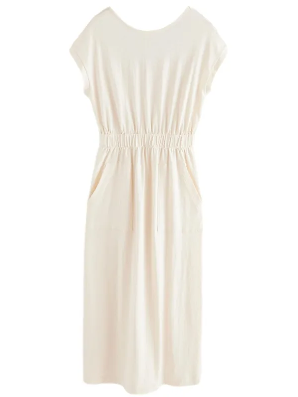 Design: Gevoerde zoom/rand; Materiaal: Katoen; Halstype: Ronde hals; Motief: Effen; Details: Gedrapeerd; Extra's: Op staal naden; Lengte: Lang/maxi; Pasvorm: Normale pasvorm; Armlengte: Kwartmouw