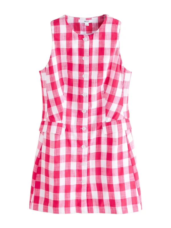 Design: Knop placket, Opzet-/flapzak, Knop sluiting; Type sluiting: Knoopsluiting; Materiaal: Gerecycled materiaal; Halstype: Ronde hals; Motief: Geruit; Soort bandjes: Brede bandjes; Extra's: All-over patroon, Label patch/label flag; Lengte: Kort/mini; Snit: Recht; Pasvorm: Normale pasvorm; Armlengte: Mouwloos