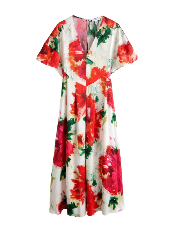Design: Gevoerde zoom/rand; Halstype: V-hals; Motief: Bloemenprint; Details: Volant; Extra’s: All-over patroon; Lengte: Lang/maxi; Pasvorm: Normale pasvorm; Armlengte: Kwartmouw