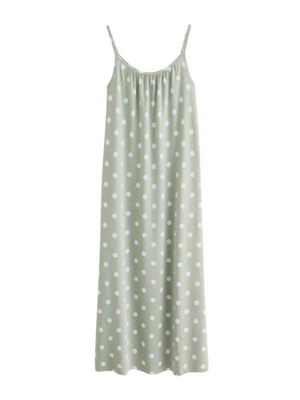 Design: Gevoerde zoom/rand; Materiaal: Katoen; Motief: Gestippeld; Soort bandjes: Spaghettibandjes; Extra's: All-over patroon, Fully fashioned; Lengte: Lang/maxi; Pasvorm: Normale pasvorm; Armlengte: Mouwloos
