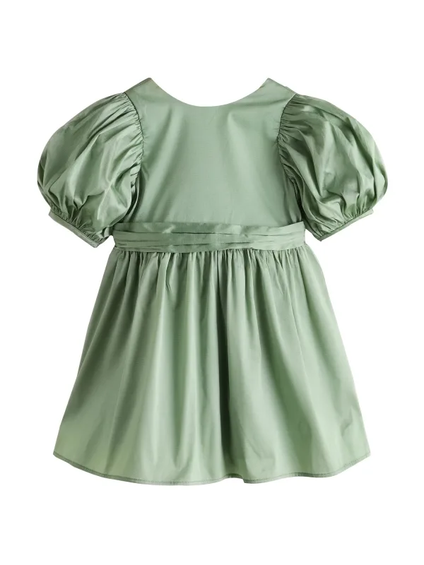Next groen - Meisjesjurk met bloemen en strik van taft