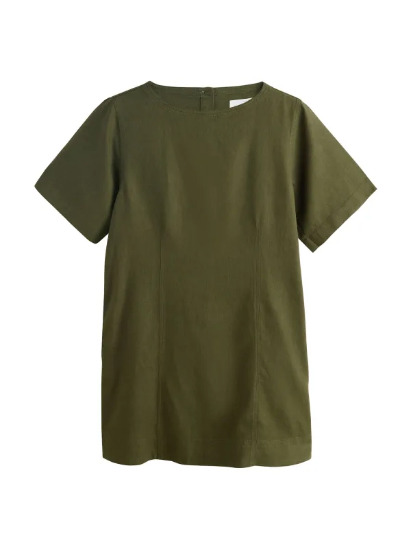 Design: Knop placket; Type sluiting: Knoopsluiting; Materiaal: Linnen; Halstype: Ronde hals; Motief: Effen; Extra's: Op staal naden; Lengte: Kort/mini; Pasvorm: Normale pasvorm; Armlengte: Kwartmouw