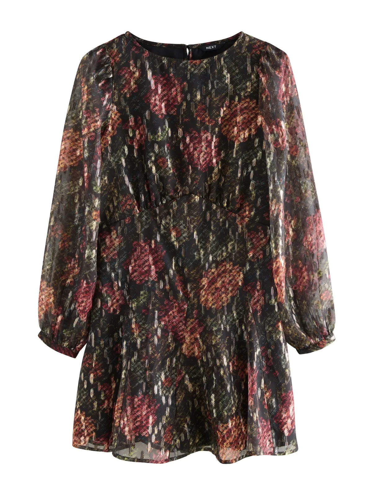 Design: Gevoerde zoom/rand; Halstype: Ronde hals; Motief: Bloemenprint; Details: Gedrapeerd; Extra's: All-over patroon; Lengte: Kort/mini; Pasvorm: Normale pasvorm; Armlengte: Lange mouw