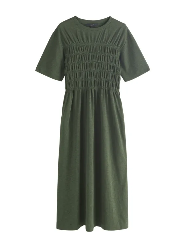 Next Jersey midiTshirtjurk met korte mouwen en aangerimpeld lijfje