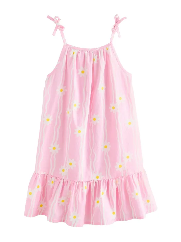 Design: Gevoerde zoom/rand, Keyholesluiting; Type sluiting: Knoopsluiting; Materiaal: Katoen; Halstype: Ronde hals; Motief: Bloemenprint; Soort bandjes: Spaghettibandjes; Details: Cut-outs, Volant, Gedrapeerd; Extra's: All-over patroon, Voelt zacht aan; Lengte: Knielengte; Snit: Uitlopend; Pasvorm: Losse pasvorm; Armlengte: Mouwloos