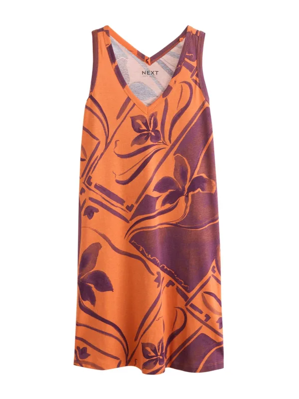 Design: Gevoerde zoom/rand, Diepe snit/decolleté, Ingelegde kraag; Materiaal: Katoen; Halstype: V-hals; Motief: Bloemenprint; Soort bandjes: Normale bandjes; Extra's: All-over patroon, Voelt zacht aan; Lengte: Kort/mini; Snit: Recht; Pasvorm: Losse pasvorm; Armlengte: Mouwloos