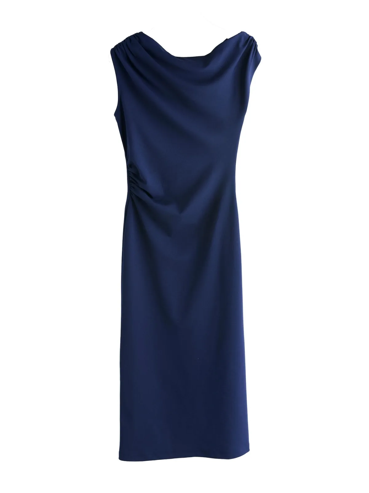 Design: Gevoerde zoom/rand; Materiaal: Gerecycled materiaal; Halstype: Watervalhals; Motief: Effen; Soort bandjes: Brede bandjes; Details: Gedrapeerd; Extra's: Voelt zacht aan; Lengte: 3/4 lengte; Pasvorm: Slanke pasvorm; Armlengte: Mouwloos
