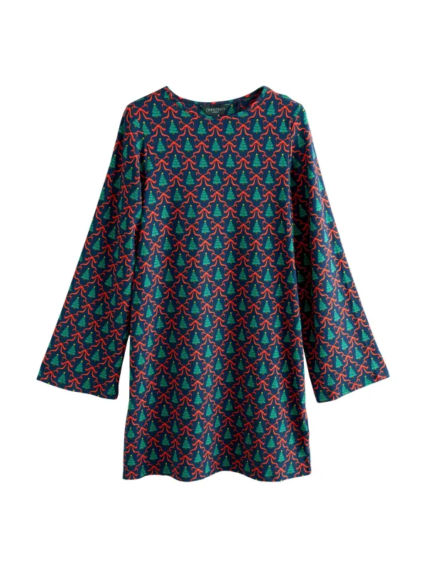 Design: Gevoerde zoom/rand; Materiaal: Jersey; Halstype: Ronde hals; Extra's: Kerstdesign; Lengte: Knielengte; Snit: Recht; Pasvorm: Normale pasvorm; Armlengte: Lange mouw