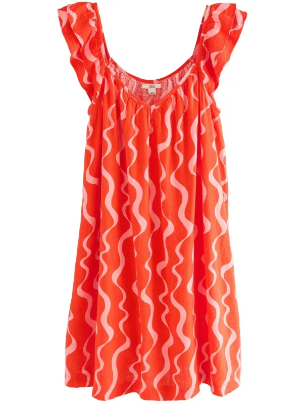 Design: Gevoerde zoom/rand; Materiaal: Viscose; Halstype: V-hals; Soort bandjes: Normale bandjes; Details: Gedrapeerd; Extra's: All-over patroon; Lengte: Kort/mini; Snit: Uitlopend; Pasvorm: Normale pasvorm; Armlengte: Mouwloos
