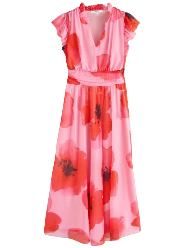 Design: Gevoerde zoom/rand, Diepe snit/decolleté; Materiaal: Gerecycled materiaal; Halstype: Opstaande kraag; Motief: Bloemenprint; Kraag: Zonder kraag; Soort bandjes: Brede bandjes; Details: Ruches, Volant, Gedrapeerd; Extra's: All-over patroon, Gladde stof; Lengte: Lang/maxi; Snit: Getailleerd; Pasvorm: Normale pasvorm; Armlengte: Mouwloos