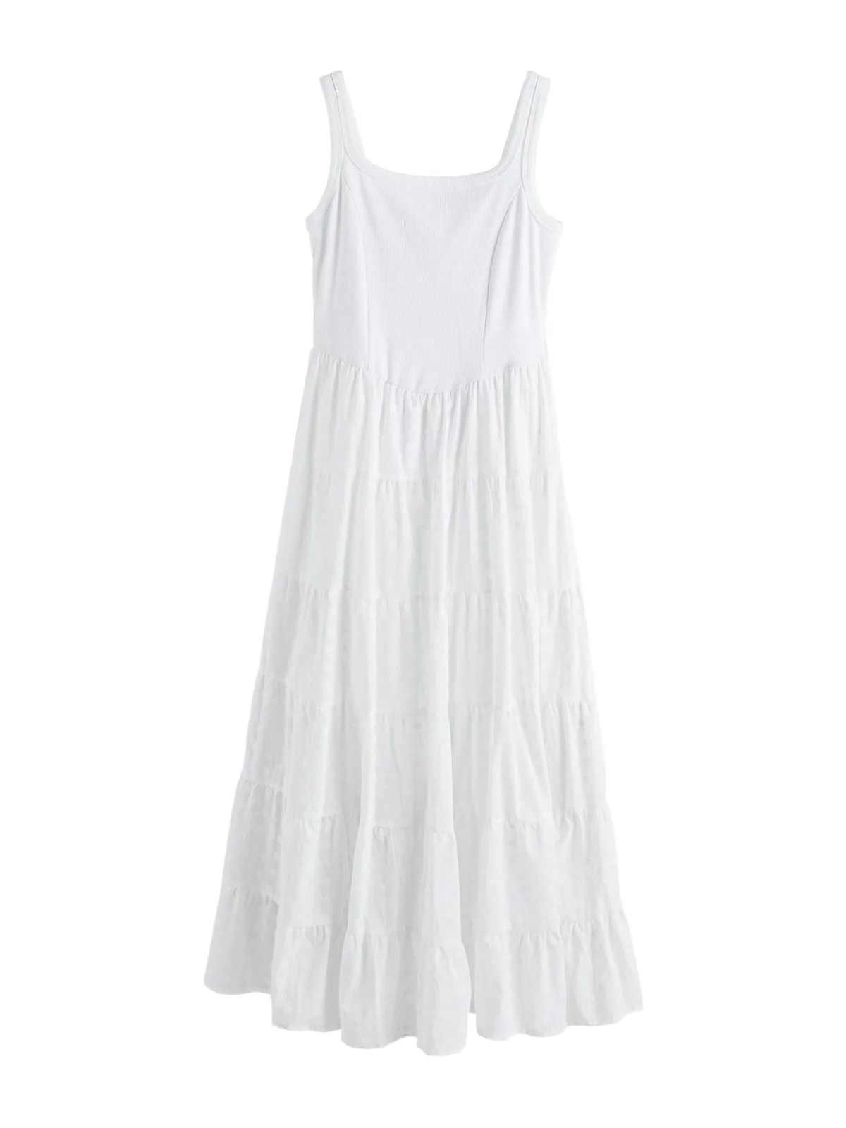 Design: Gevoerde zoom/rand, Geribbeld gebreid, Zakken aan de zijkant; Materiaal: Katoen; Halstype: Carréhals; Motief: Bloemenprint; Soort bandjes: Normale bandjes; Details: Volant, Gedrapeerd; Extra's: Op staal naden, Voelt zacht aan; Lengte: 3/4 lengte; Snit: Getailleerd; Pasvorm: Normale pasvorm; Armlengte: Mouwloos