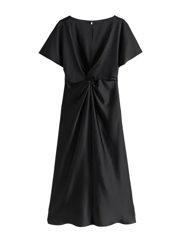 Next Getextureerde satijnen midi-jurk met korte mouwen en gedraaide voorkant