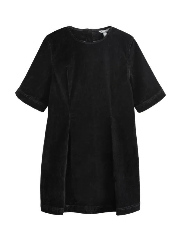 Design: Gevoerde zoom/rand, Rug rits; Type sluiting: Ritssluiting; Materiaal: Denim; Halstype: Ronde hals; Motief: Effen; Details: Plooien; Extra's: Gewassen effect, Vaste grip; Lengte: Kort/mini; Snit: Recht; Pasvorm: Normale pasvorm; Armlengte: Halve mouw