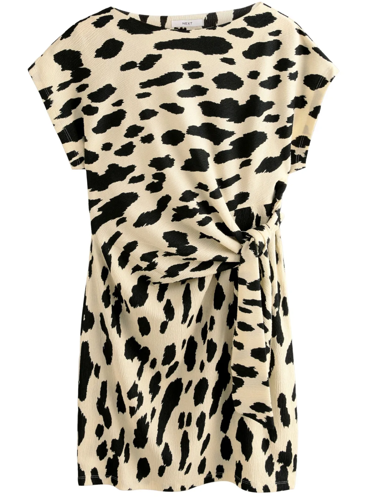 Design: Gevoerde zoom/rand, Brede mouwopeningen; Materiaal: Gerecycled materiaal; Halstype: Ronde hals; Motief: Dierenprint; Details: Gedrapeerd; Extra's: All-over patroon, Met textuur, Voelt zacht aan; Lengte: Kort/mini; Snit: Getailleerd; Pasvorm: Normale pasvorm; Armlengte: Kwartmouw
