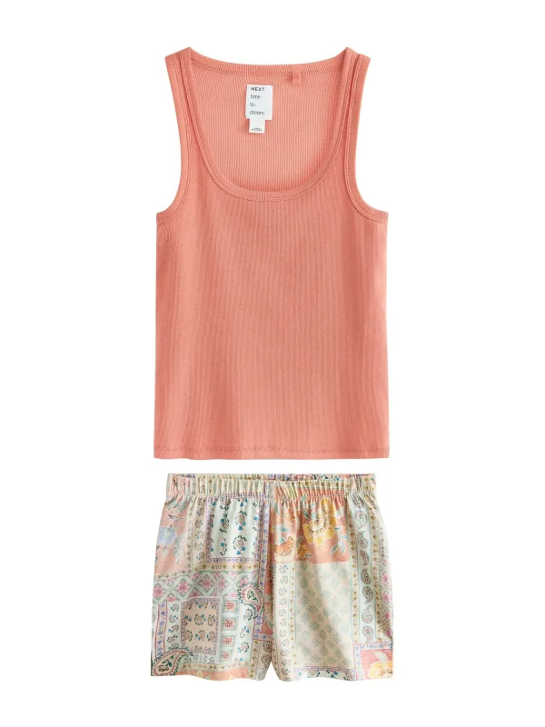 Next Korte pyjama beige / blauw / abrikoos / mandarijn