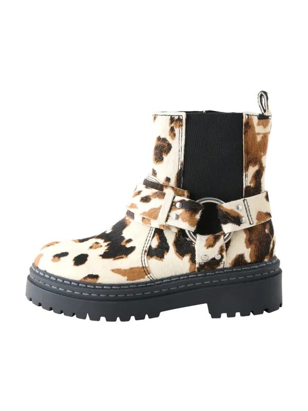 Design: Profielzolen, Hielband; Type sluiting: Ritssluiting; Type hak: Blokhak; Materiaal: Leer; Motief: Dierenprint; Materiaal: Suède; Schoenneus: Ronde neus; Extra's: Studs, All-over patroon; Hakhoogte: Platte hak (0-3 cm)