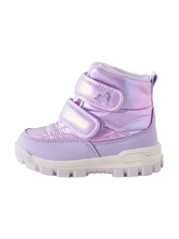 Design: Hielband; Type sluiting: Velcro sluiting; Motief: Effen; Schoenneus: Ronde neus; Extra's: Stevige stof, Metallic look; Voering: Warm gevoerd; Hakhoogte: Platte hak (0-3 cm)