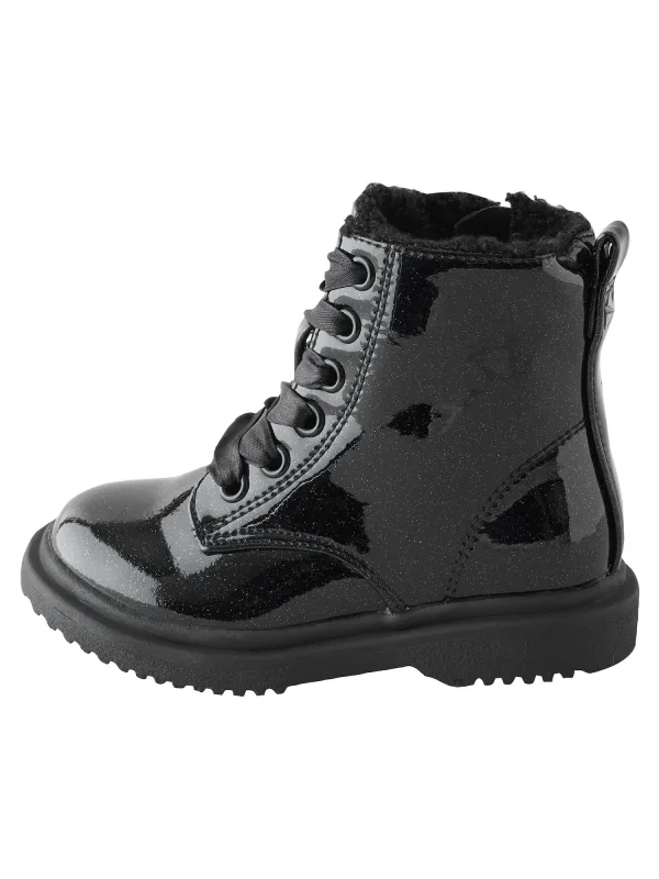 Design: Ritszakken aan de zijkant, Vetering met 6 gaten, Hielband; Type sluiting: Ritssluiting; Materiaal: Imitatieleder; Motief: Effen; Materiaal: Imitatieleer; Schoenneus: Ronde neus; Extra's: Glanzend, Flexibele zool; Voering: Warm gevoerd; Hakhoogte: Platte hak (0-3 cm); Pasvorm van de schoenen: Breed