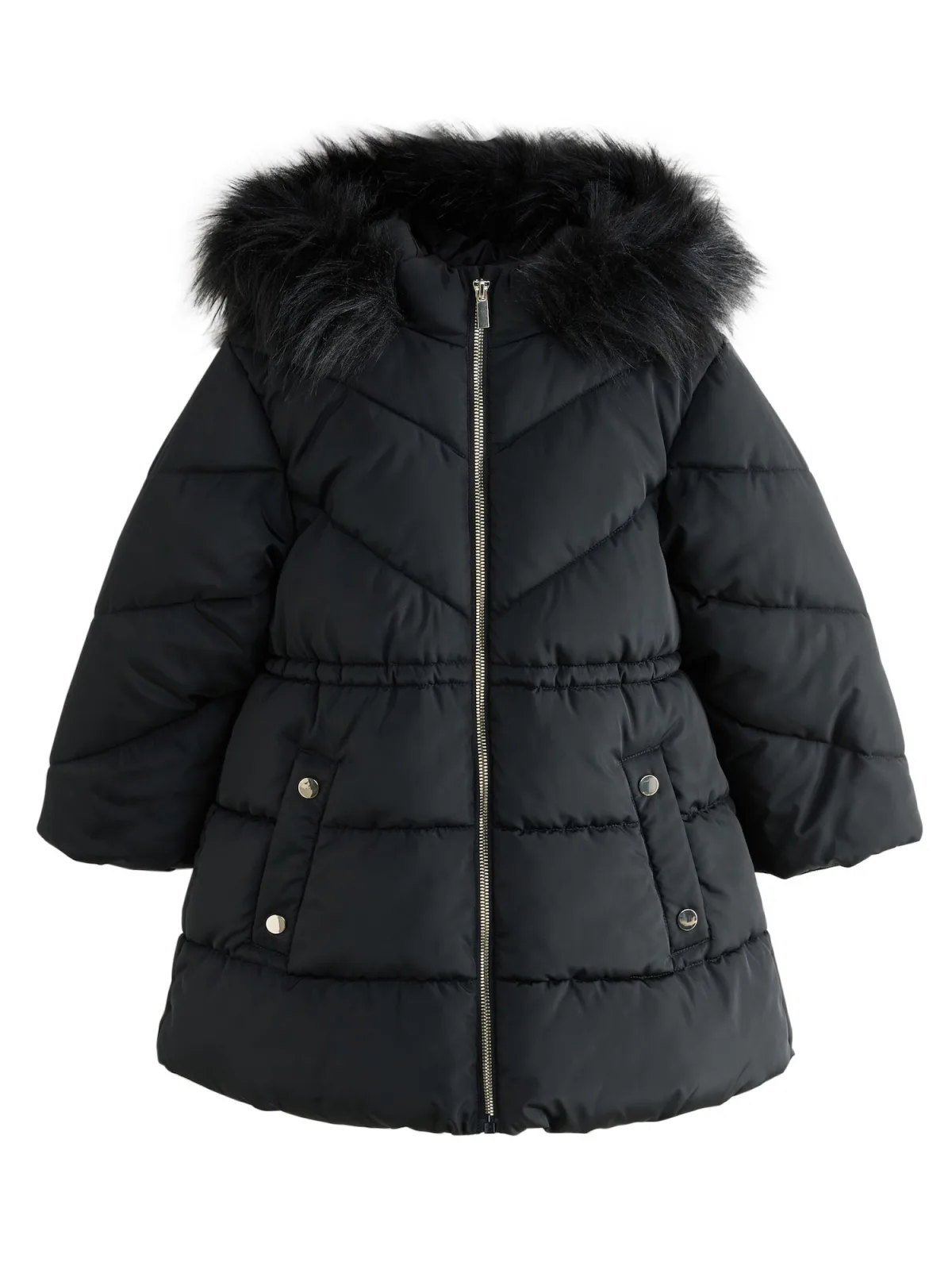 Next Regenbestendig gewatteerd jack met rand van imitatiebont