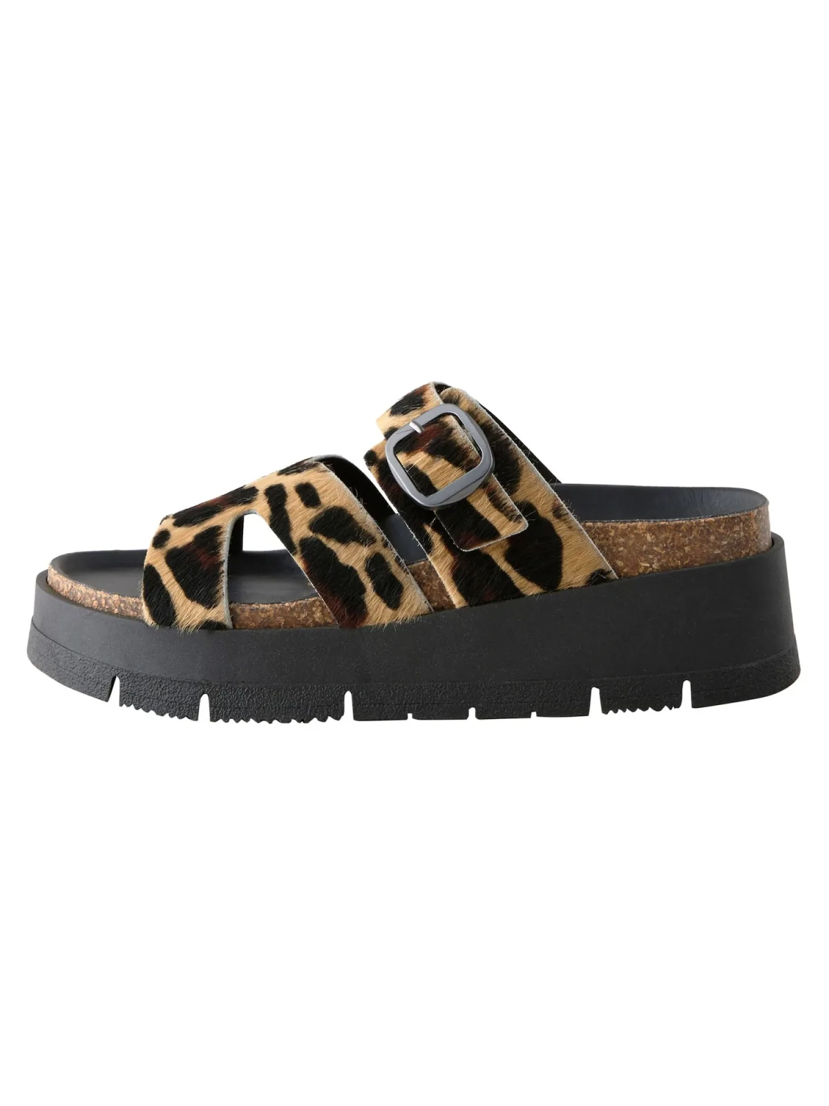 Design: Elastische inserts; Type sluiting: Slip; Materiaal: Leer; Motief: Dierenprint; Materiaal: Glad leer; Schoenneus: Open toe; Extra's: All-over patroon; Hakhoogte: Platte hak (0-3 cm)