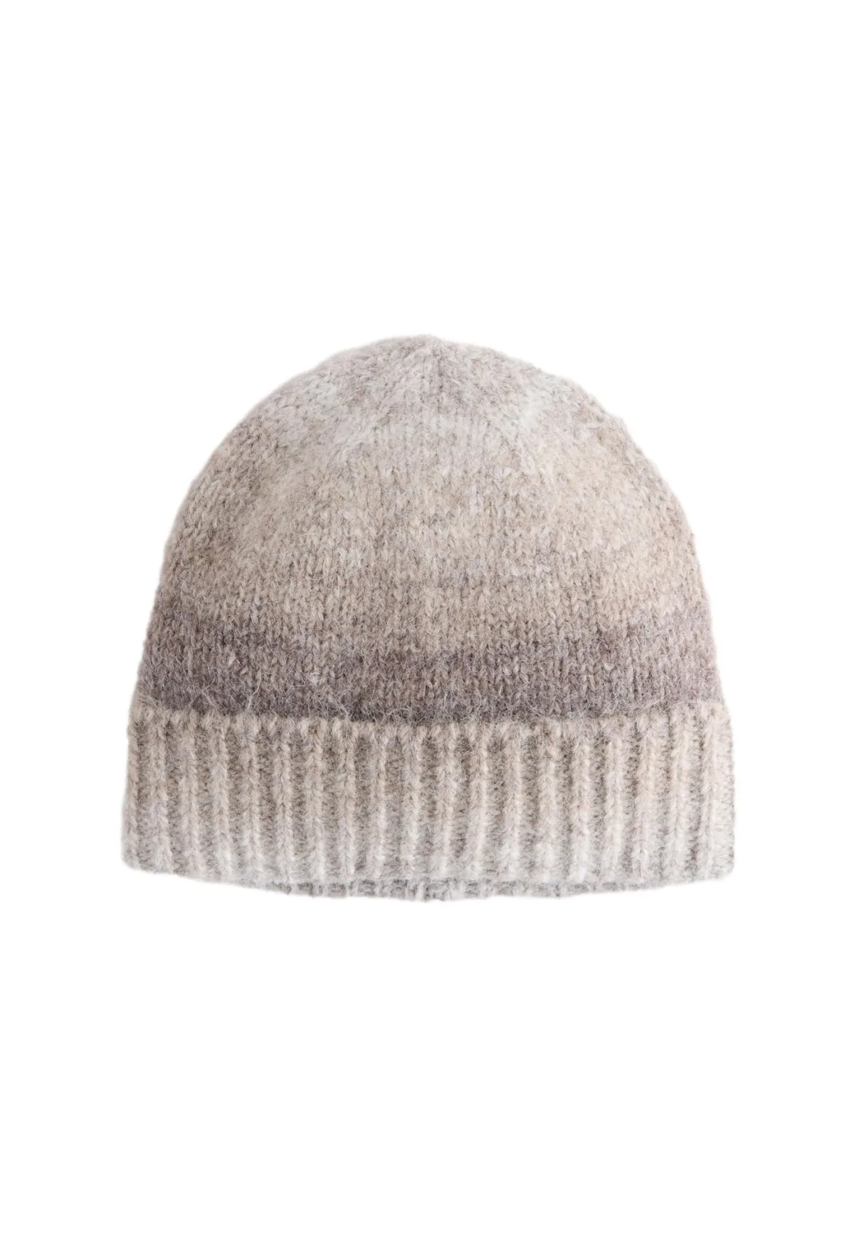 Design: Omgeslagen zoom; Materiaal: Gerecycled materiaal; Motief: Kleurverloop; Type muts: Beanie; Extra's: Fully fashioned, Voelt zacht aan