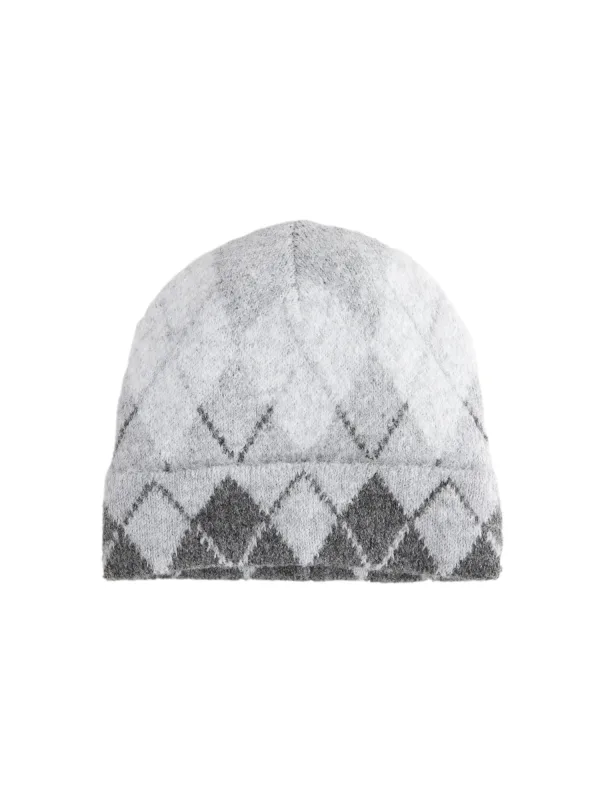 Design: Omgeslagen zoom; Materiaal: Gerecycled materiaal; Motief: Geruit; Type muts: Beanie; Extra's: All-over patroon