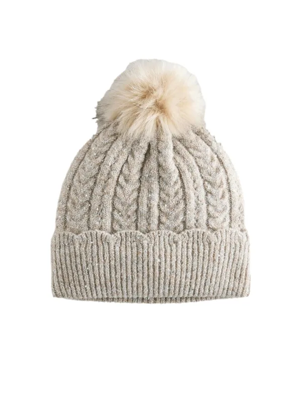 Design: Omgeslagen zoom, Pompoms; Materiaal: Gerecycled materiaal; Motief: Effen; Type muts: Bobble muts; Extra's: Omkeerbare pailletten