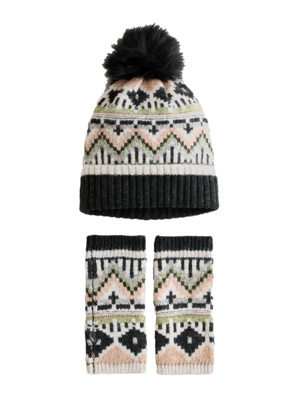 Design: Geribd ceintuurtje, Pompoms; Materiaal: Knitwear; Motief: Aztec print; Type muts: Beanie; Extra's: All-over patroon, Voelt zacht aan; Aantal: 2 Pack