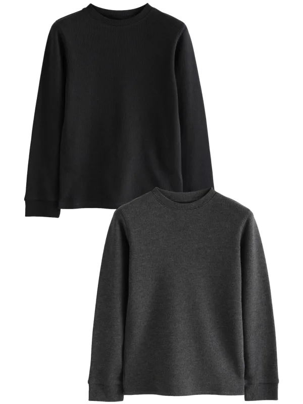 Design: Geribbelde kraag; Type sluiting: Knoopsluiting; Materiaal: Jersey; Halstype: Ronde hals; Motief: Mélange; Extra's: Met textuur; Pasvorm: Normale pasvorm; Aantal: 2 Pack; Armlengte: Lange mouw