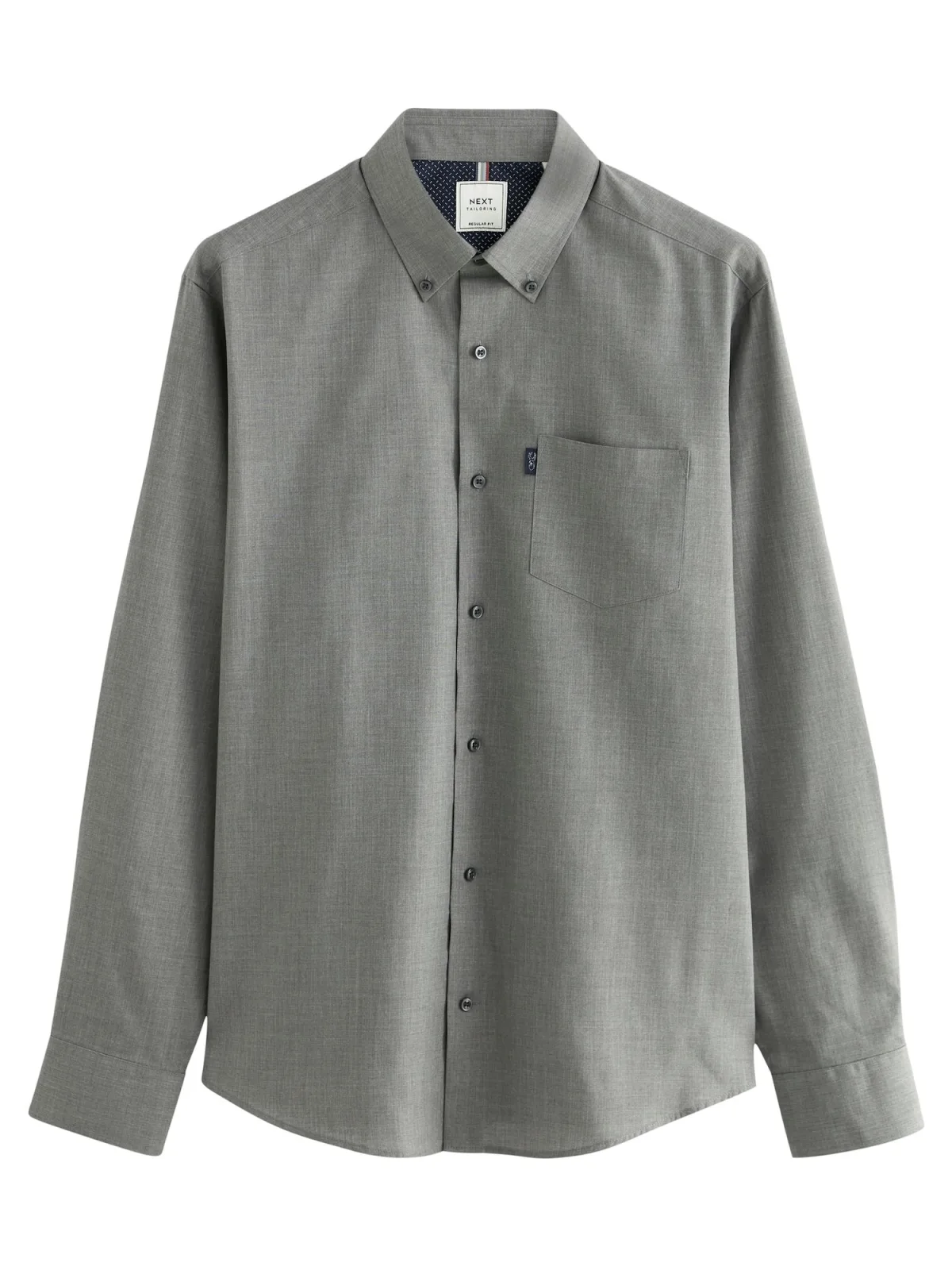 Design: Gevoerde zoom/rand; Type sluiting: Knoopsluiting; Materiaal: Gerecycled materiaal; Motief: Mélange; Kraag: Button-down; Extra's: Voelt zacht aan; Pasvorm: Normale pasvorm; Pasvorm: Regular fit; Armlengte: Lange mouw; Lengte: Normale lengte