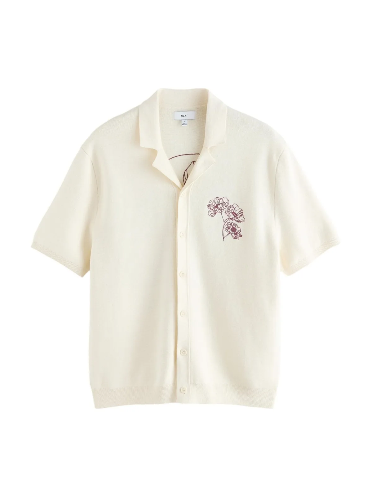 Design: Geribbelde kraag, Knop placket; Type sluiting: Knoopsluiting; Materiaal: Knitwear; Halstype: Reverskraag; Motief: Bloemenprint; Extra's: Applicaties, Fully fashioned, Met textuur; Pasvorm: Normale pasvorm; Pasvorm: Regular fit; Armlengte: Halve mouw