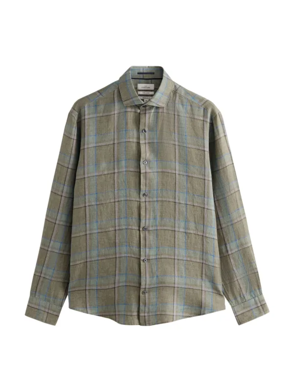 Design: Gevoerde zoom/rand; Type sluiting: Knoopsluiting; Materiaal: Linnen; Motief: Geruit; Kraag: Cut-away boord; Extra's: All-over patroon; Pasvorm: Regular fit; Armlengte: Lange mouw