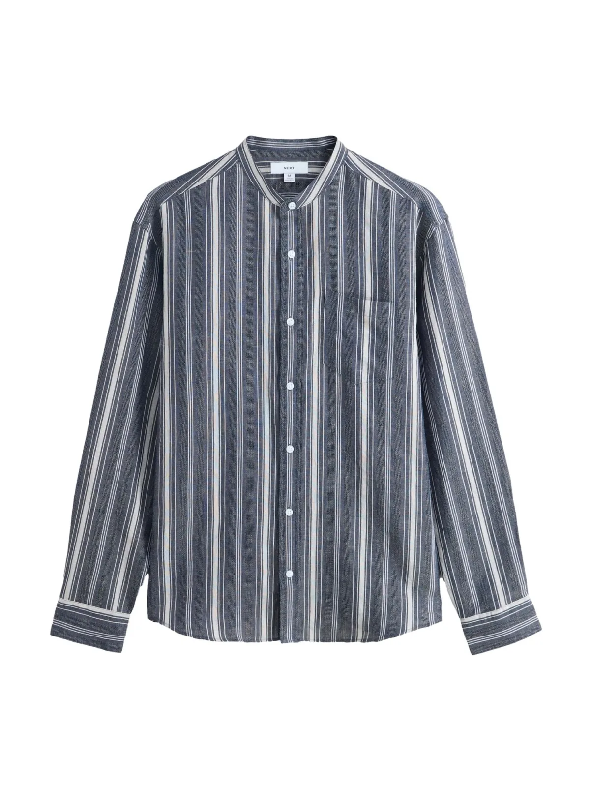 Design: Rugplooi; Type sluiting: Knoopsluiting; Materiaal: Katoen; Motief: Gestreept; Kraag: Opstaande kraag; Extra's: All-over patroon; Pasvorm: Regular fit; Armlengte: Lange mouw