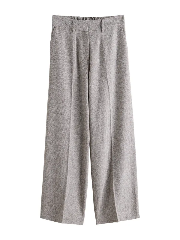Design: Zakken aan de zijkant; Type sluiting: Ritssluiting; Materiaal: Linnen; Motief: Visgraat; Details: Plooien; Extra's: Riemlussen; Lengte: Lang/maxi; Pasvorm: Wide leg; Taillehoogte: Mid waist