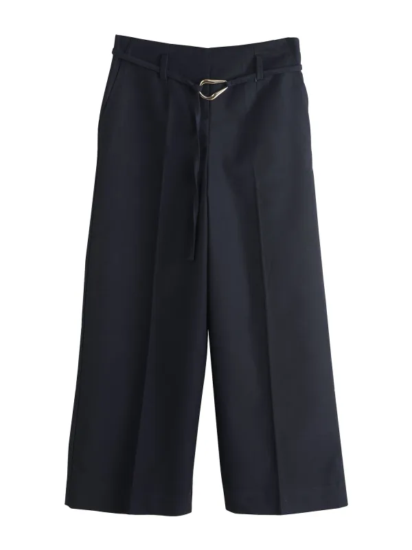 Design: Met band/snoer; Type sluiting: Ritssluiting; Materiaal: Katoen; Motief: Effen; Details: Plooien; Extra's: Riemlussen; Lengte: Lang/maxi; Pasvorm: Wide leg; Taillehoogte: Mid waist
