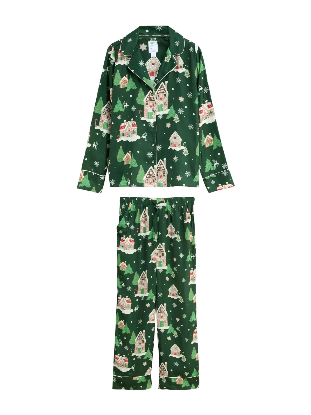 Design: Elastische taille/zoom, Knop placket, Revers kraag; Materiaal: Gerecycled materiaal; Details: Gedrapeerd; Extra's: Milieuvriendelijk geproduceerd, Kerstdesign; Aantal per set: 2-delig