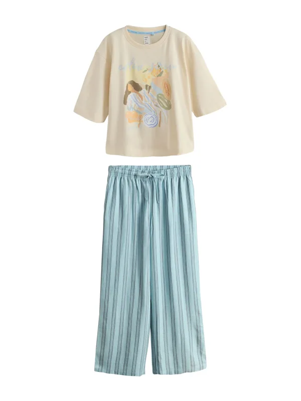 Specificaties: Next Pyjama crème / duifblauw / pastelblauw / zwart