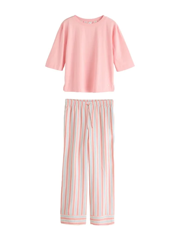 Design: Taille met trekkoord, Geribbelde kraag; Materiaal: Katoen; Motief: Gestreept; Details: Gedrapeerd; Extra's: Voelt zacht aan; Aantal per set: 2-delig; Pasvorm: Normale pasvorm