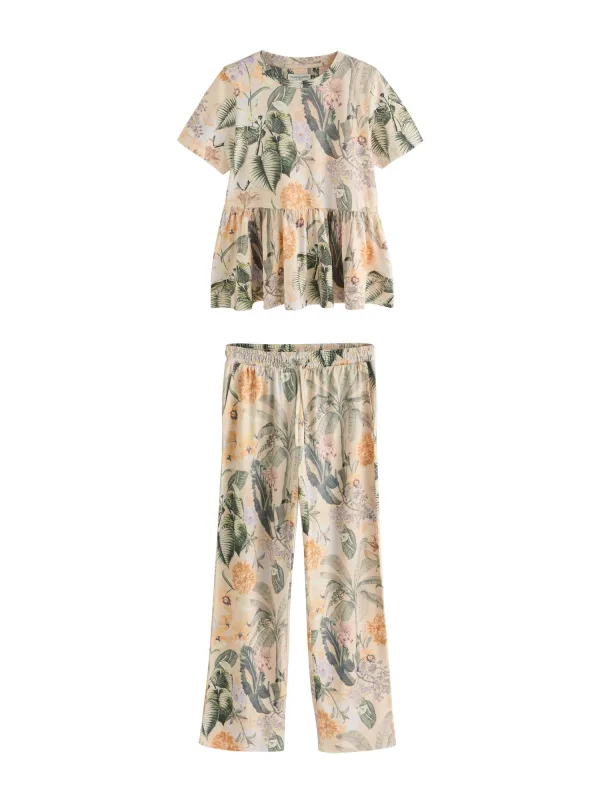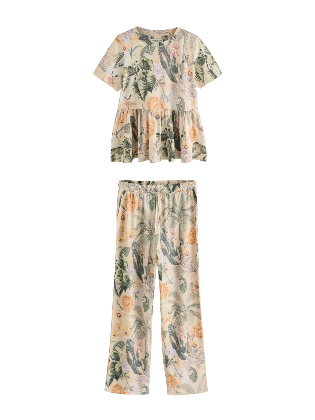 Design: Elastische taille/zoom, Rechte zoom, Zakken aan de zijkant; Materiaal: Katoen; Motief: Bloemenprint; Details: Volant, Gedrapeerd; Extra's: All-over patroon; Aantal per set: 2-delig