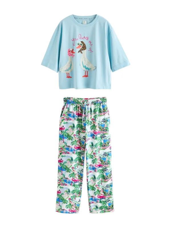 Next Pyjama lichtblauw / groen / pink / offwhite