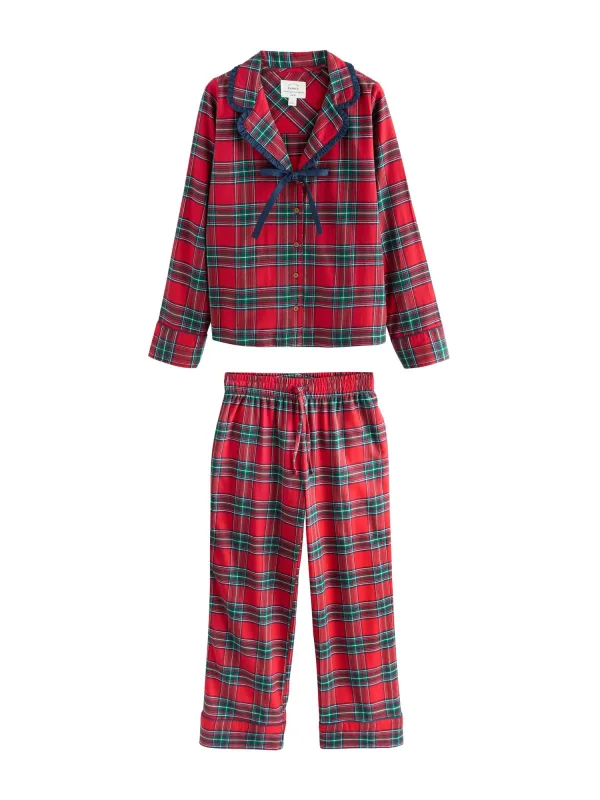 Design: Elastische taille/zoom, Revers kraag; Materiaal: Katoen; Motief: Geruit; Details: Ruches, Gedrapeerd; Extra's: Voelt zacht aan, Kerstdesign; Aantal per set: 2-delig