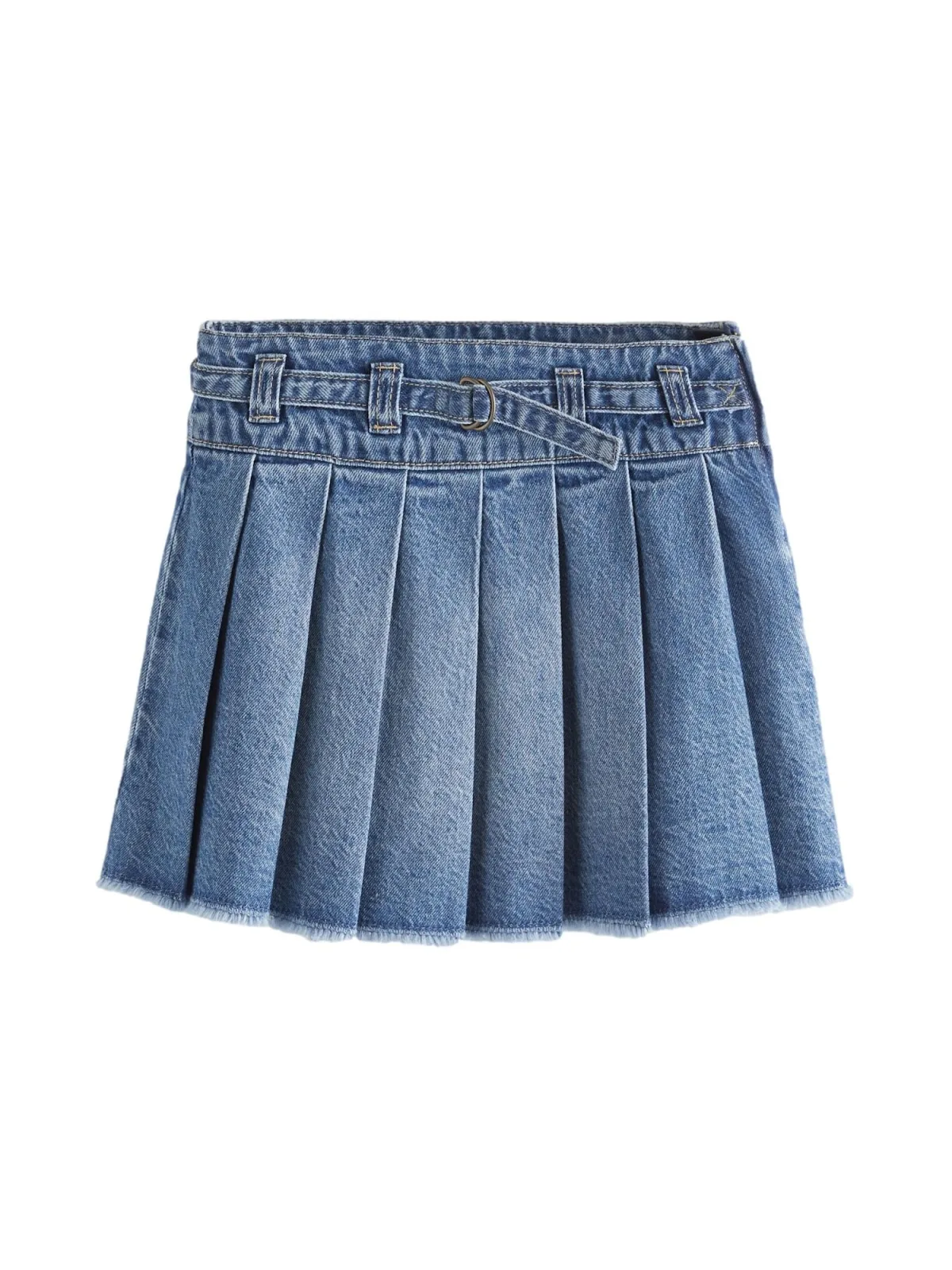 Materiaal: Denim; Motief: Effen; Rokvorm: Plooirok; Details: Plooien; Lengte: Kort/mini