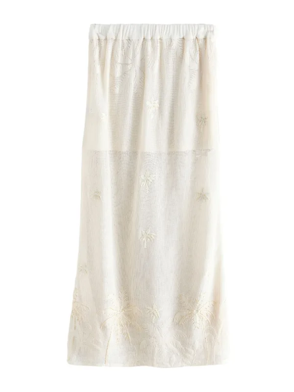 Design: Elastische taille/zoom; Materiaal: Gehaakt; Motief: Bloemenprint; Rokvorm: A-lijn rok; Details: Borduursels, Gedrapeerd; Extra's: Voelt zacht aan; Lengte: 3/4 lengte; Pasvorm: Normale pasvorm; Taillehoogte: Mid waist