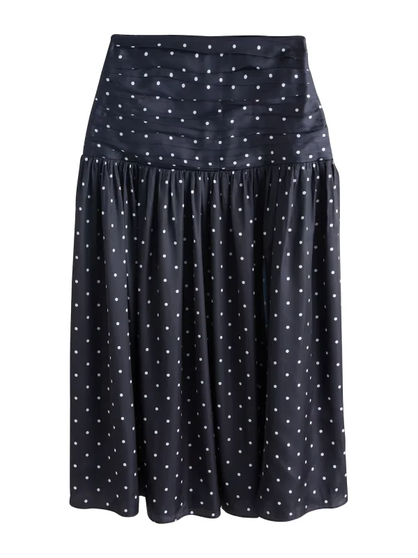 Design: Flare; Type sluiting: Ritssluiting; Materiaal: Satijn; Motief: Gestippeld; Rokvorm: A-lijn rok; Details: Gedrapeerd; Extra's: All-over patroon; Lengte: Lang/maxi; Pasvorm: Losse pasvorm; Taillehoogte: Low waist
