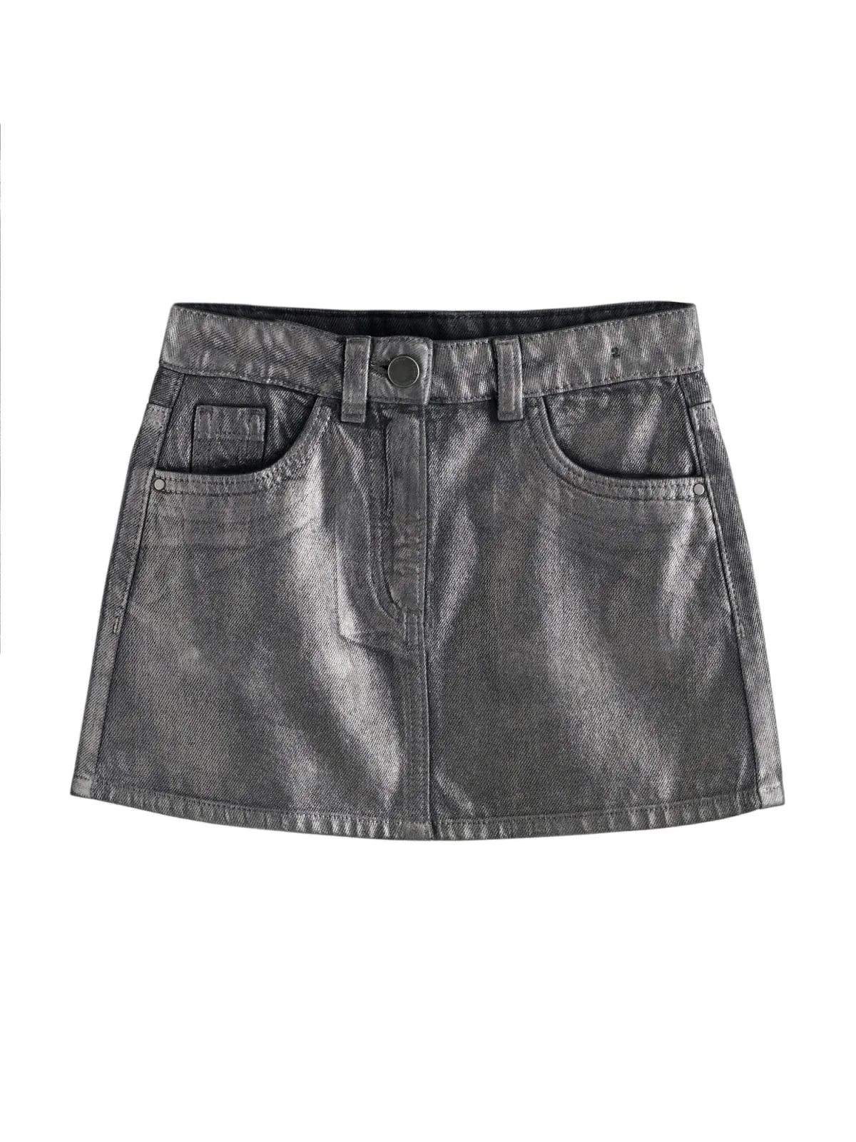 Design: Gevoerde zoom/rand, Achterzak, Zakken aan de zijkant; Type sluiting: Knoopsluiting; Materiaal: Katoen; Motief: Effen; Rokvorm: Minirok; Extra's: Riemlussen, Metallic look, Wijdte verstelbaar; Lengte: Kort/mini