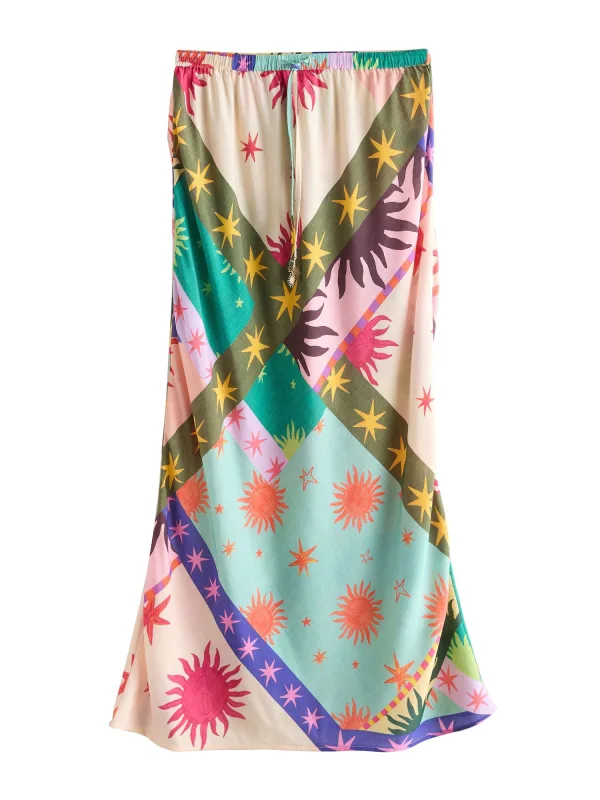 Design: Gevoerde zoom/rand, Elastische taille/zoom; Materiaal: Viscose; Details: Plooien; Extra's: All-over patroon, Koele grip; Lengte: Lang/maxi; Pasvorm: Normale pasvorm