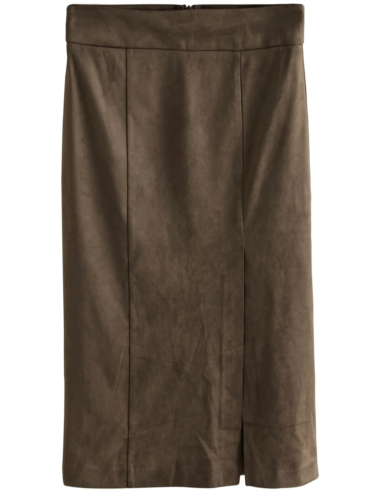 Design: Gevoerde zoom/rand, Beenopening, Verborgen rits, Knop sluiting; Type sluiting: Ritssluiting; Materiaal: Imitatieleder; Motief: Effen; Rokvorm: Kokerrok; Extra's: Velours look, Voelt zacht aan; Lengte: 3/4 lengte; Pasvorm: Normale pasvorm; Taillehoogte: High waist