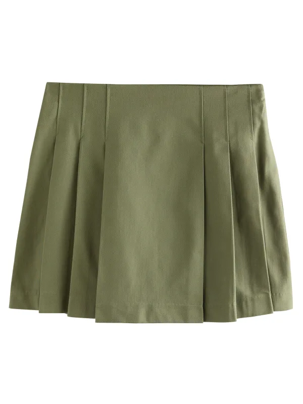 Design: Gevoerde zoom/rand; Materiaal: Katoen; Motief: Effen; Rokvorm: Plooirok; Details: Plooien; Extra's: Op staal naden; Lengte: Kort/mini; Pasvorm: Normale pasvorm