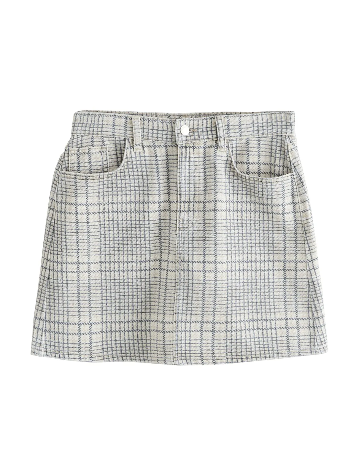 Design: Ritssluiting, 5-pocket-style; Type sluiting: Ritssluiting; Materiaal: Denim; Motief: Geruit; Rokvorm: Minirok; Extra's: All-over patroon, Gewassen effect, Vaste grip, Riemlussen; Lengte: Kort/mini; Pasvorm: Normale pasvorm; Taillehoogte: Mid waist