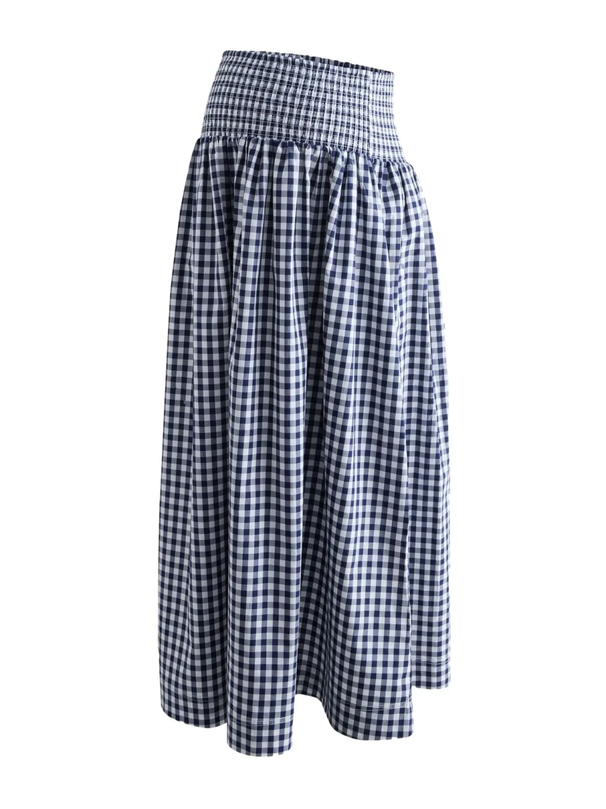Design: Wijde taille, Elastische taille/zoom; Materiaal: Katoen; Motief: Geruit; Details: Gedrapeerd; Extra's: All-over patroon, Voelt zacht aan; Borstvoedingsfunctie: Zonder borstvoedingsfunctie; Lengte: Lang/maxi; Pasvorm: Normale pasvorm; Taillehoogte: High waist